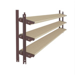 Aluminiowy brązowy kpl. uchwytów w zestawie z 3 ruchomymi deskami o długości 70 cm montowanych w pionie lub poziomie na listwie z możliwością łączenia o długości 28,8 cm
